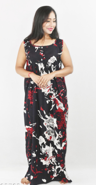 BDROX Pure Cotton Full Ankle Length Maxi Indonesian and Gujri Fabric Butterfly printed Black nighty_Meesho#e75YIVnA_Amazon#BDROX53INGJM_BB