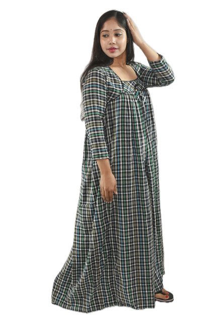 / BDROX Black & Green Winter Woolen Cotton Nighty Square neck With Pippin
