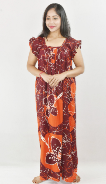 BDROX Pure Cotton Full Ankle Length Maxi Nighty with All Over Print Brown Base with Blue Flowers_Amazon#BDROX50CRESH_BBB _Meesho#TMx2Ho24 _flipkart#BDROX50CRESH_BBB