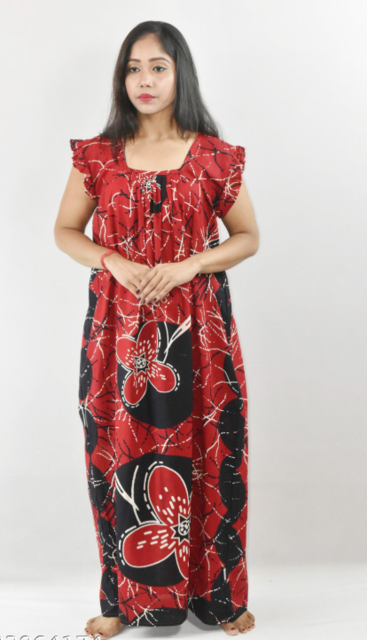BDROX Pure Cotton Full Ankle Length Indonesian Fabric Kaftan Nighty with Dancing Girl Printed Red Colour_Amazon#BDROX55IKDG_R