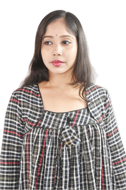 / BDROX Black & Red Winter Woolen Cotton Nighty Square neck With Pippin