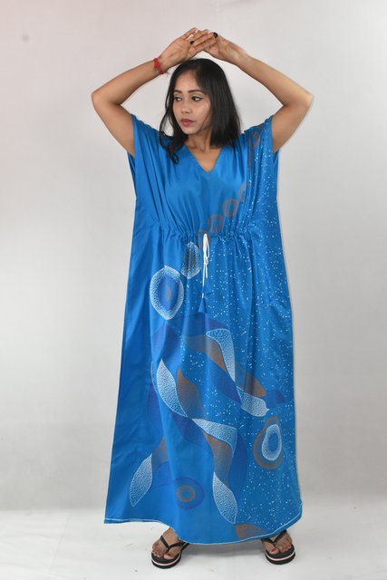 BDROX Pure Cotton Full Ankle Length Indonesian Fabric Kaftan Nighty with Dancing Girl Printed Red Colour_Amazon#BDROX55IKDG_R
