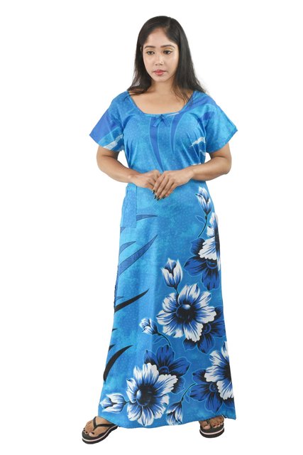 / BDROX Blue Cotton Maxi Nighty Round Neck & Short Sleeve