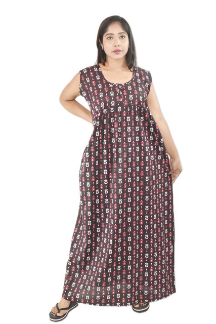 BDROX Cotton Flower Printed White-Red Kaftan Nighty_Meesho#MBFCNPCF000000065 AMAZON-BFCNBRF0000000017