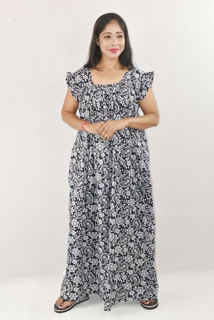 BDROX Pure Cotton Full Ankle Length Maxi Nighty with All Over Print Brown Base with Green Flowers_Meesho#bV0bCZjZ_Amazon#BDROX50CRESH_BBG_flipart#BDROX50CRESH_BBG