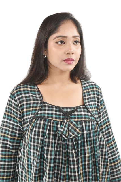 / BDROX Blue & Yellow Winter Woolen Cotton Nighty Square neck With Pippin
