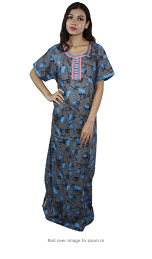 BDROX Cotton Graphite base Blue Flower Printed Maxi Nighty_Amazon# BDROX50CRESH_GBB