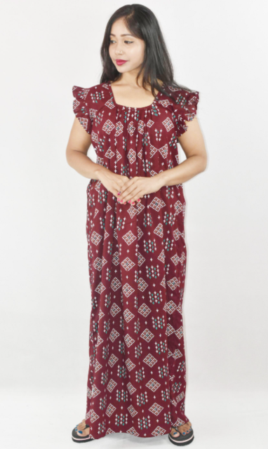 BDROX Cotton Pipein RAS Printed Nighty with Pocket Maroon Maxi Nighty_amazon#BDROX53INGJM_PPM _Meesho,fhlipkart_BFCNGF00000000583