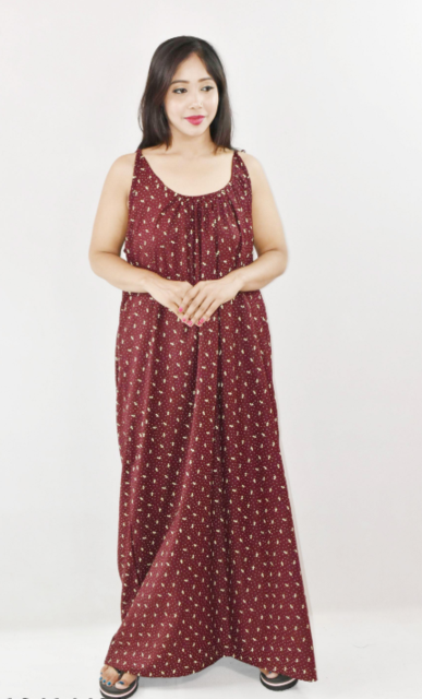 / Bdrox Cotton Maroon Ribbon Maxi Nighty