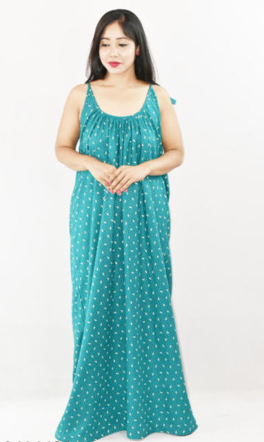 / Bdrox Cotton Mint Green Ribbon Maxi Nighty