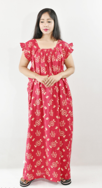BDROX Pure Cotton Full Ankle Length Indonesian Fabric Kaftan Nighty with Dancing Girl Printed Red Colour_Amazon#BDROX55IKDG_R
