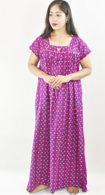 / Bdrox Cotton Purple Maxi Nighty Square Neck Short Sleeves with Pleats