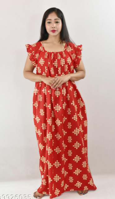 BDROX Cotton Pipein RAS Printed Nighty with Pocket Maroon Maxi Nighty_amazon#BDROX53INGJM_PPM _Meesho,fhlipkart_BFCNGF00000000583