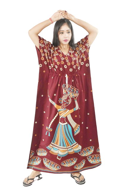 BDROX Pure Cotton Full Ankle Length Maxi Indonesian and Gujri Fabric Butterfly printed Maroon night_Amazon#BDROX53INGJM_BM
