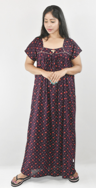 BDROX Dark Maroon Cotton Maxi Nighty Square Neck Short Sleeves with Pipien