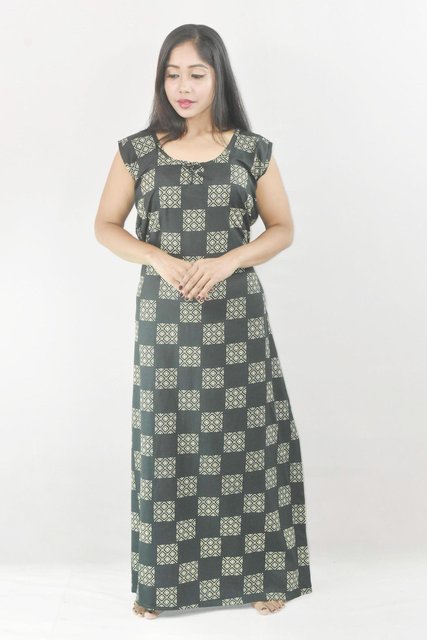 / BDROX Green Cotton Maxi Nighty Round Neck & Sleeveless