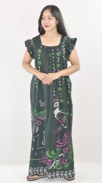 BDROX Pure Cotton Full Ankle Length Maxi Nighty with All Over Print Brown Base with Green Flowers_Meesho#bV0bCZjZ_Amazon#BDROX50CRESH_BBG_flipart#BDROX50CRESH_BBG