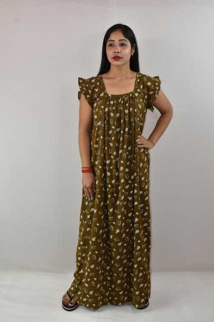 BDROX Pure Cotton Full Ankle Length Maxi Nighty with All Over Print Brown Base with Yellow Flowers_Amazon#BDROX50CRESH_BBY _Flipkart#BDROX50CRESH_BBY_meesho#