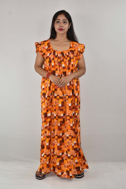 BDROX Pure Cotton Full Ankle Length Maxi Nighty with All Over Print Brown Base with Yellow Flowers_Amazon#BDROX50CRESH_BBY _Flipkart#BDROX50CRESH_BBY_meesho#