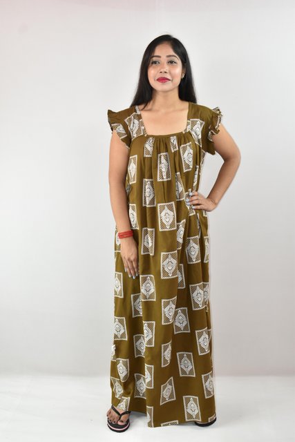 BDROX Pure Cotton Full Ankle Length Maxi Nighty with All Over Print Brown Base with Pink Flowers_Flipkrt#BDROX50CRESH_BBP _Meesho#5SfFDtbu