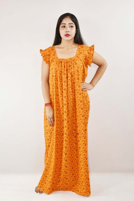 BDROX Cotton Pipe with Pocket Yellow Maxi Nighty_Meesho#BFCNYF0000000026