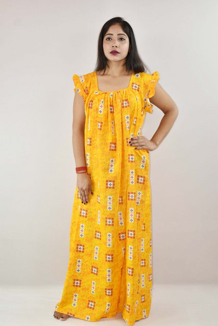 BDROX Cotton Pipe with Pocket Yellow Maxi Nighty_Meesho#BFCNYF0000000026