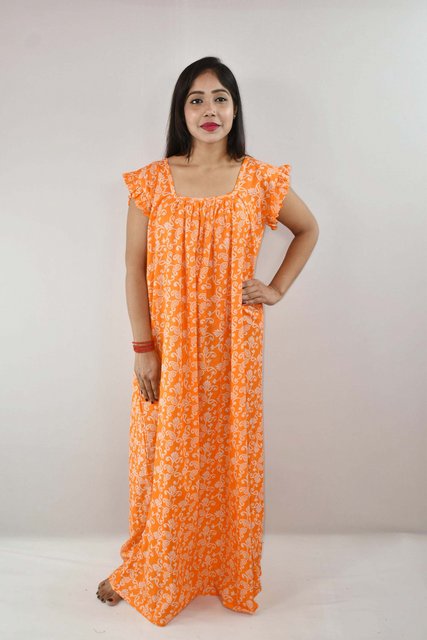 BDROX Pure Cotton Full Ankle Length Maxi Nighty with All Over Print Brown Base with Yellow Flowers_Amazon#BDROX50CRESH_BBY _Flipkart#BDROX50CRESH_BBY_meesho#