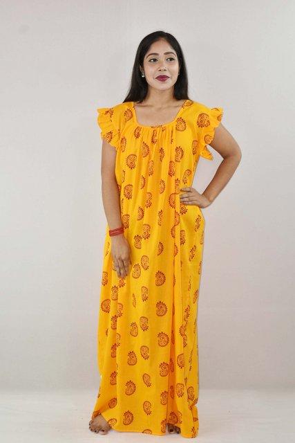 BDROX Cotton Pipe with Pocket Yellow Maxi Nighty_Meesho#BFCNYF0000000026