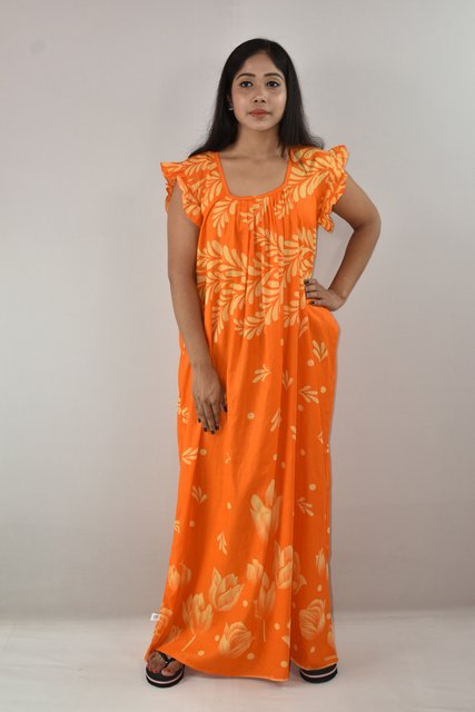 BDROX Pure Cotton Full Ankle Length Maxi Nighty with All Over Print Brown Base with Green Flowers_Meesho#bV0bCZjZ_Amazon#BDROX50CRESH_BBG_flipart#BDROX50CRESH_BBG