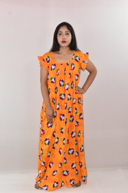 BDROX Pure Cotton Full Ankle Length Maxi Nighty with All Over Print Brown Base with Yellow Flowers_Amazon#BDROX50CRESH_BBY _Flipkart#BDROX50CRESH_BBY_meesho#