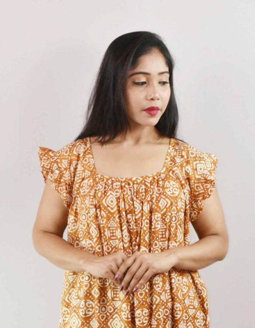 BDROX Pure Cotton Full Ankle Length Maxi Nighty with All Over Print Brown Base with Yellow Flowers_Amazon#BDROX50CRESH_BBY _Flipkart#BDROX50CRESH_BBY_meesho#