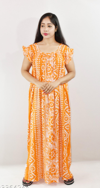 BDROX Cotton Pipe with Pocket Yellow Maxi Nighty_Meesho#BFCNYF0000000026