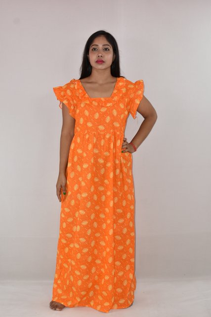 BDROX Pure Cotton Full Ankle Length Maxi Nighty with All Over Print Brown Base with Blue Flowers_Amazon#BDROX50CRESH_BBB _Meesho#TMx2Ho24 _flipkart#BDROX50CRESH_BBB