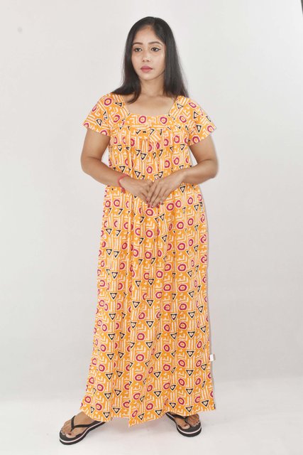 Yellow Maxi Nighty Square Neck Short Sleeves with Pipien