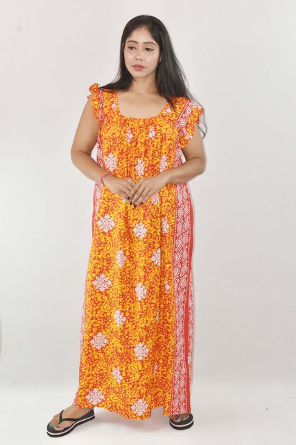 BDROX Pure Cotton Full Ankle Length Maxi Nighty with All Over Print Brown Base with Yellow Flowers_Amazon#BDROX50CRESH_BBY _Flipkart#BDROX50CRESH_BBY_meesho#