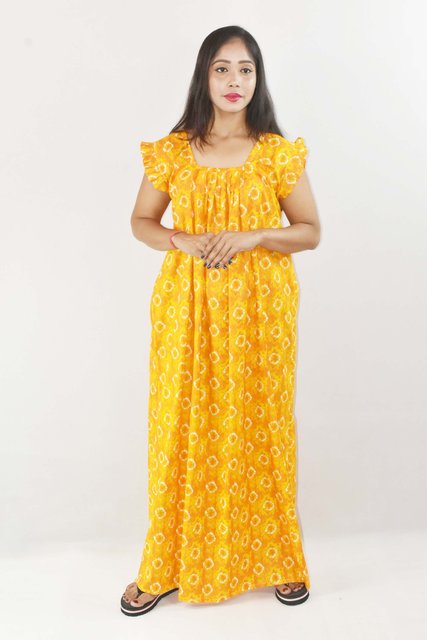 BDROX Pure Cotton Full Ankle Length Maxi Nighty with All Over Print Brown Base with Yellow Flowers_Amazon#BDROX50CRESH_BBY _Flipkart#BDROX50CRESH_BBY_meesho#