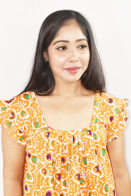 Yellow Maxi Nighty Square Neck Short Sleeves with pleats