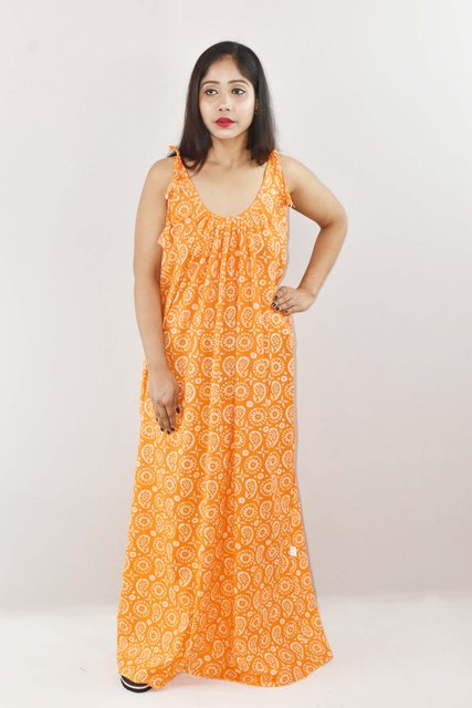 Yellow Ribbon Cotton Maxi Nighty