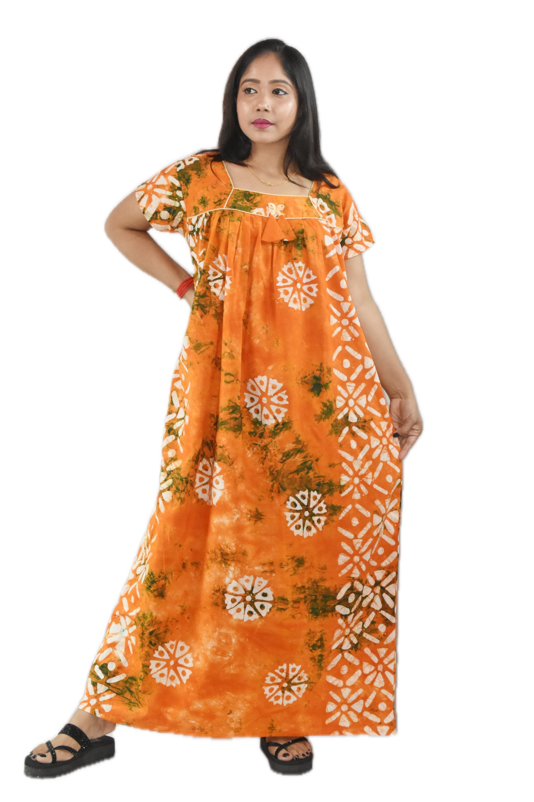 BDROX Cotton Flower Printed White-Red Kaftan Nighty_Meesho#MBFCNPCF000000065 AMAZON-BFCNBRF0000000017