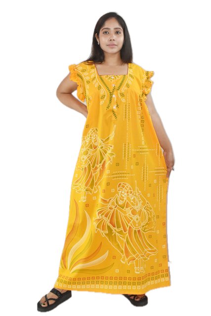 BDROX Cotton Pipe with Pocket Yellow Maxi Nighty_Meesho#BFCNYF0000000026