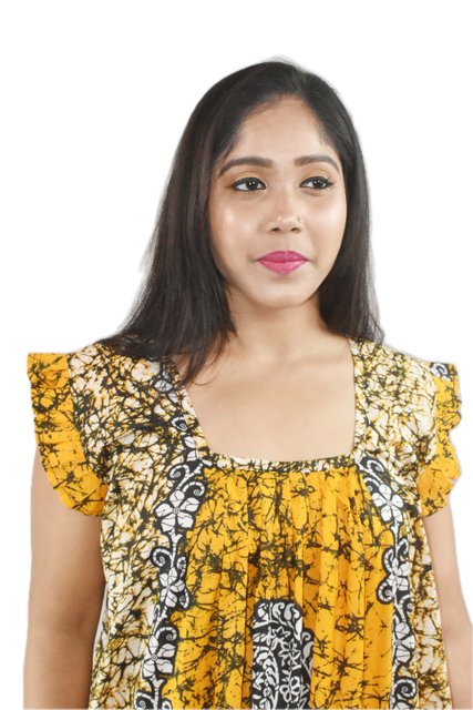 Yellow square neck Pleated Sleeve