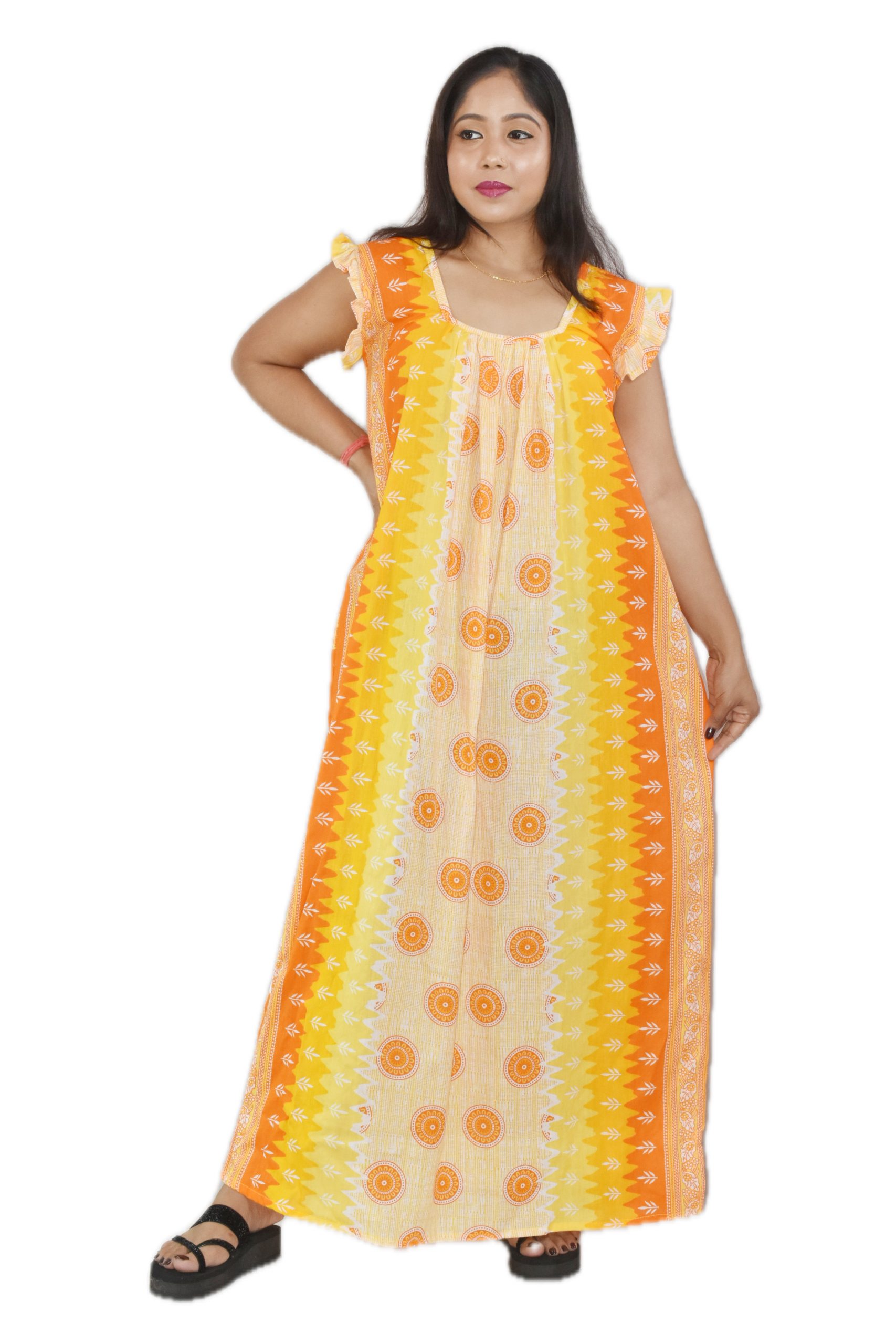 BDROX Pure Cotton Full Ankle Length Maxi Nighty with All Over Print Brown Base with Pink Flowers_Flipkrt#BDROX50CRESH_BBP _Meesho#5SfFDtbu