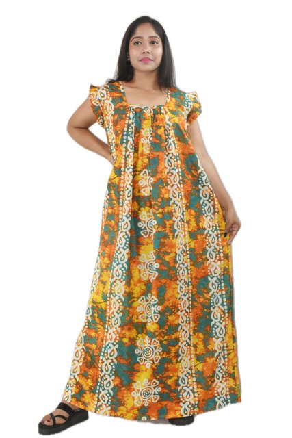 BDROX Pure Cotton Full Ankle Length Maxi Nighty with All Over Print Brown Base with Blue Flowers_Amazon#BDROX50CRESH_BBB _Meesho#TMx2Ho24 _flipkart#BDROX50CRESH_BBB