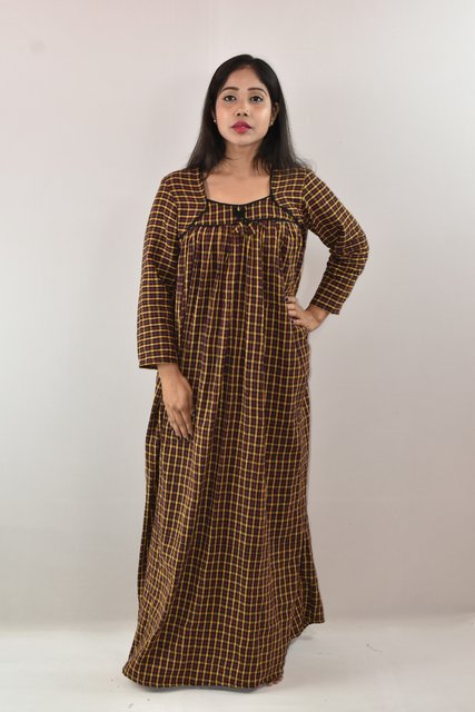 BDROX Pure Cotton Full Ankle Length Maxi Nighty with All Over Print Brown Base with Yellow Flowers_Amazon#BDROX50CRESH_BBY _Flipkart#BDROX50CRESH_BBY_meesho#